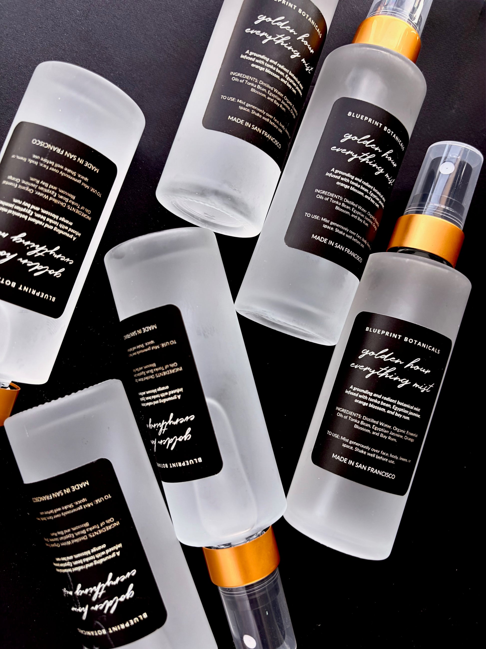 This one feels like crisp fall day in a bottle — warm, luminous, and deeply comforting. The Golden Hour Everything Mist is a soft, aromatic blend that brings together creamy tonka bean, delicate jasmine, bright orange blossom, and a subtle whisper of bay rum. Together they create a scent that’s both grounding and radiant — like the last light of day stretching across your skin.